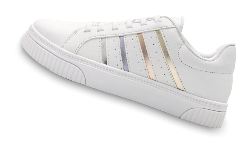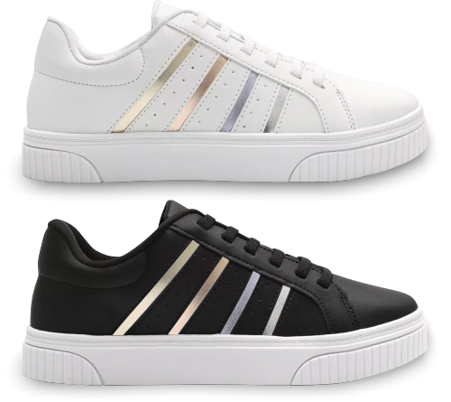 Agora, em uma oferta especial: ao comprar um par, leve dois! Você receberá um par na elegante cor branca e outro na sofisticada cor preta. Feito com um cabedal em sintético de alta qualidade, este calçado não apenas garante durabilidade e resistência, mas também adiciona um toque de estilo vibrante ao seu visual, com suas quatro listras em tons diferentes.